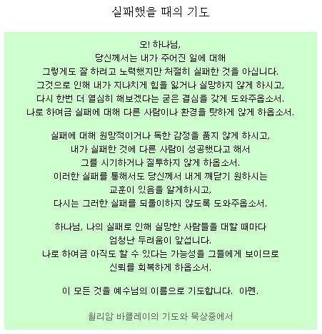 내가 적당한 실패로써 자만에 늪에 빠져살지 않게 해주신 것 감사드리고