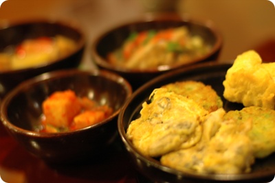 이건 굴전과 호박전 두부전과 잡채 버섯탕수...