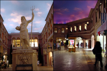 유럽풍의 테마파크 쇼핑몰. 장소와 시간에 따라 천장의 색이 바뀌는 곳이다.