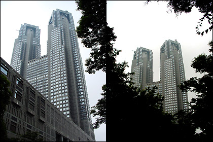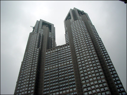 도쿄도청: 높이 243m. 두 개의 고층 빌딩과 반원형 플라자로 구성되어 있는
