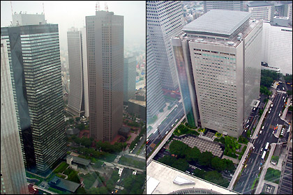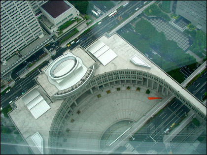 ▲ 전망대에서 찍은 도쿄도청의 반원형 플라자. 위에서 보니 원형 경기장같군.